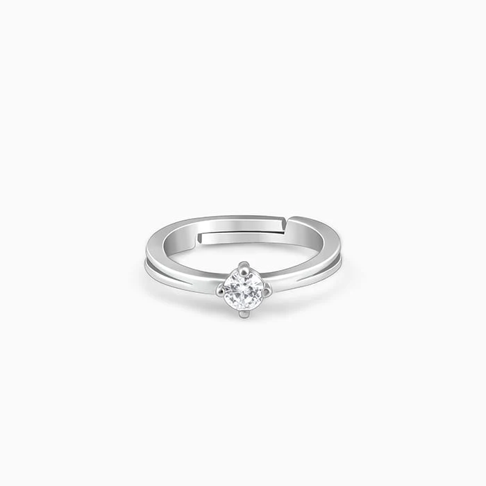 This elegant solitaire ring is crafted from genuine 92.5% sterling silver and designed to add timeless charm to your everyday look. At its centre sits a sparkling, high-grade cubic zirconia stone, securely held in a four-prong setting that enhances its brilliance. The sleek band is adjustable, offering flexibility in fit without compromising on comfort or style.