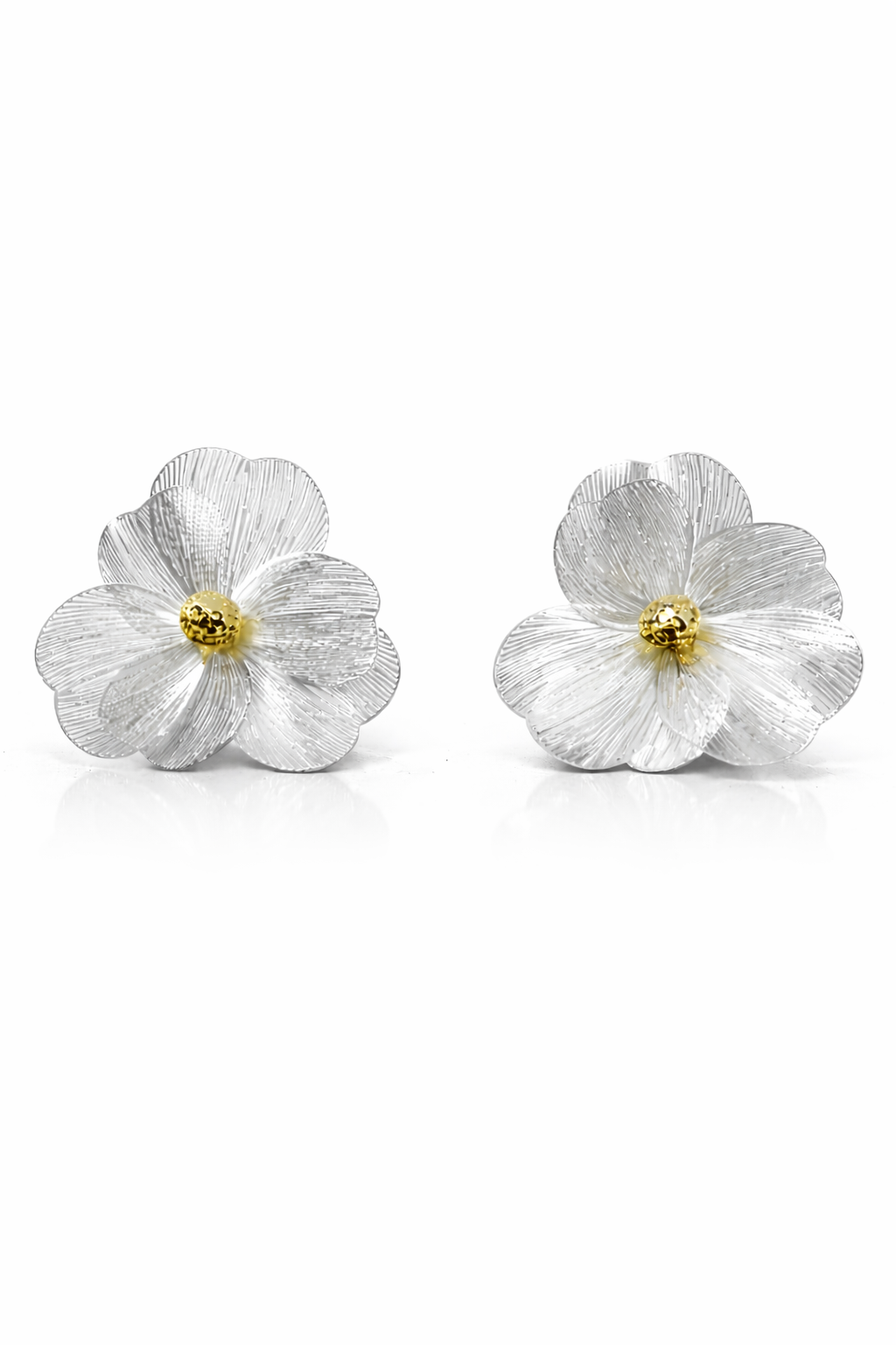 Delicate and luminous, the Luna Petal Earrings feature finely textured silver petals with a radiant gold center, inspired by the soft glow of moonlit blooms. Perfect for effortless everyday elegan